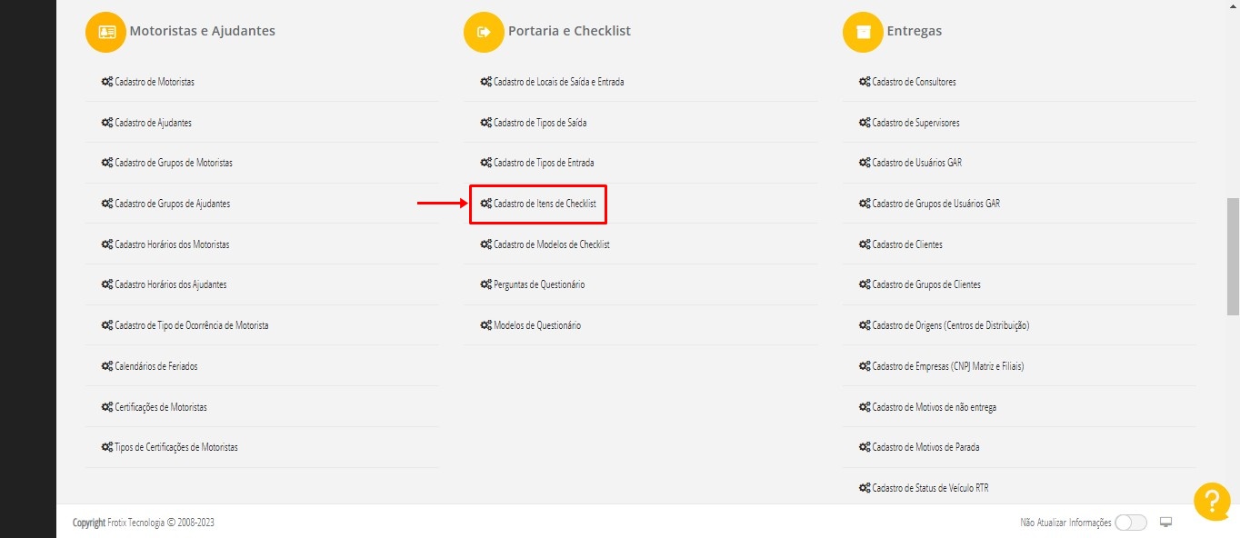 2. Selecionar “Cadastro de Itens de Checklist“: