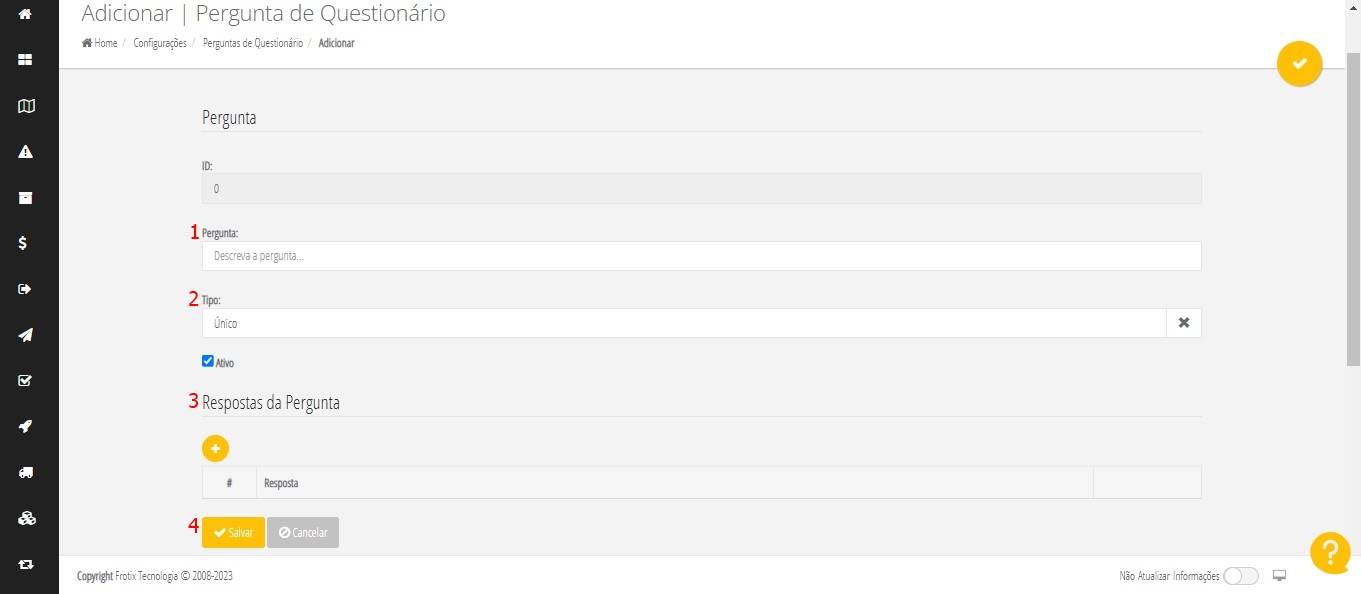 (3) Caso o “Tipo de Resposta (2)” seja Único ou Múltiplo, definir as respostas disponíveis para seleção do usuário;