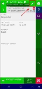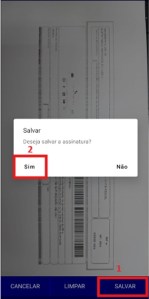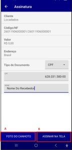 1. Selecionar o ícone destacado na imagem para o envio da Assinatura na tela ou Foto do Canhoto: