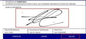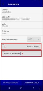 3. Digite o número do documento (1) e o Nome do recebedor (3):
